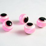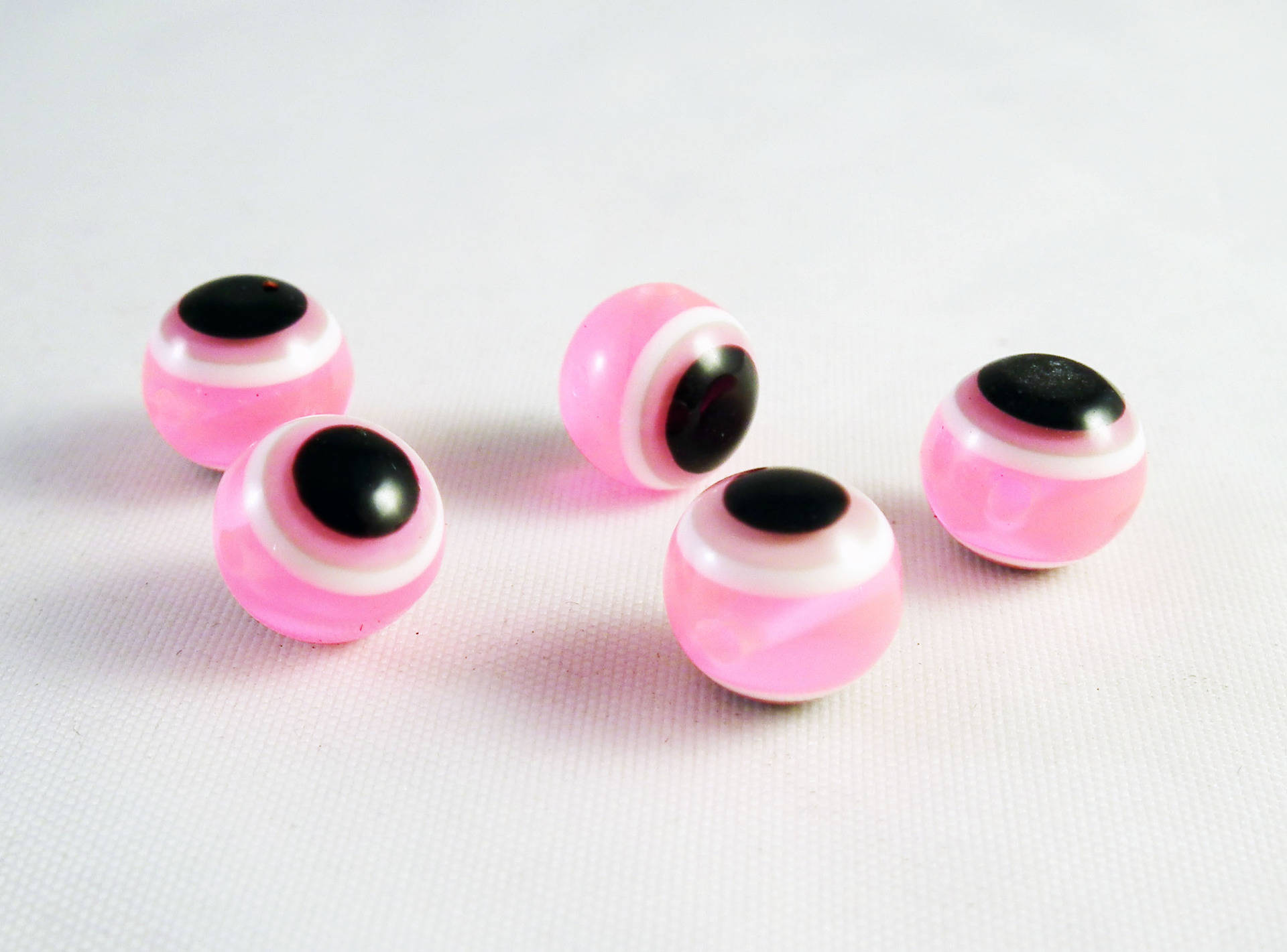 Lot de 5 Perles Rondes Oeil Grec Chanceux de couleur Rose et Blanc Noir, 8mm de diamètre.