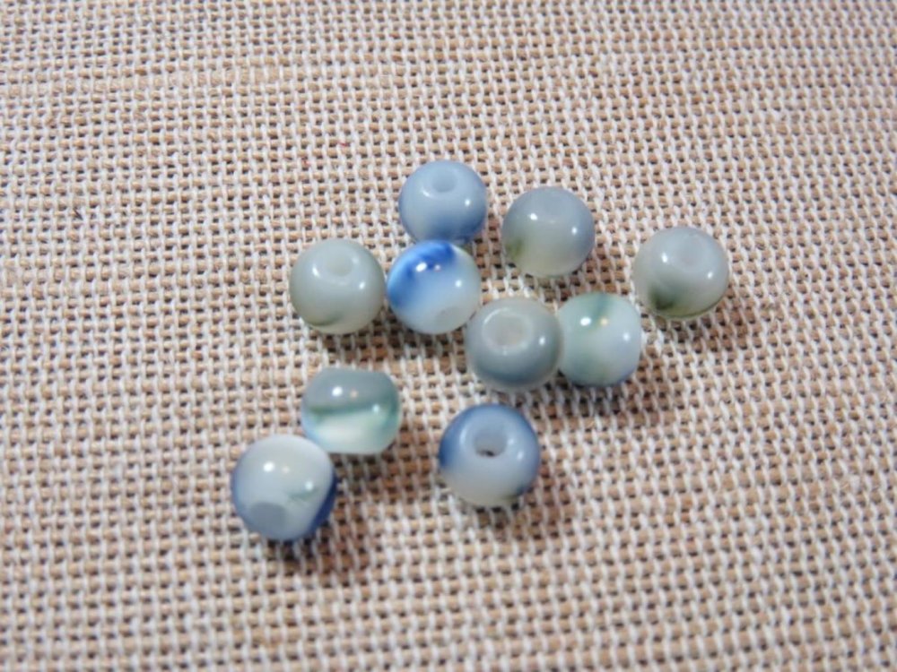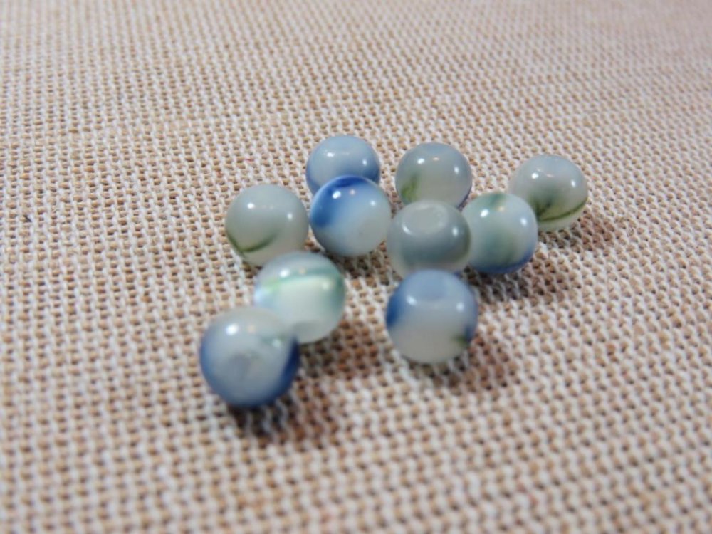lot de 12 perles en verre tacheté couleur bleu vert, ronde 6mm