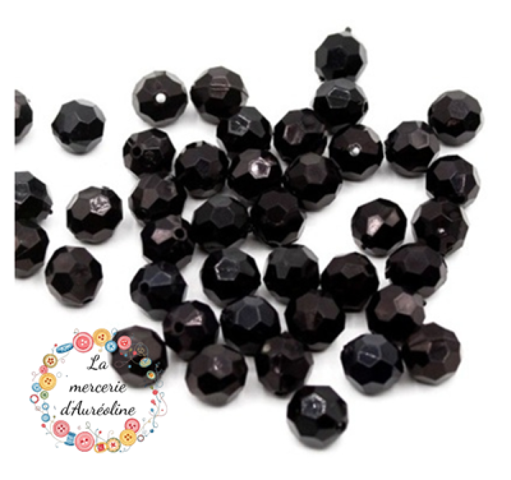 Perles de verre rondes à facettes de couleur noires de 6mm de diamètre.