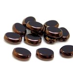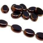 Perle tchèque ovale et plate, verre pressé, opaque, noir, contour cuivré, patine, 8 x 6 mm, lot de 10