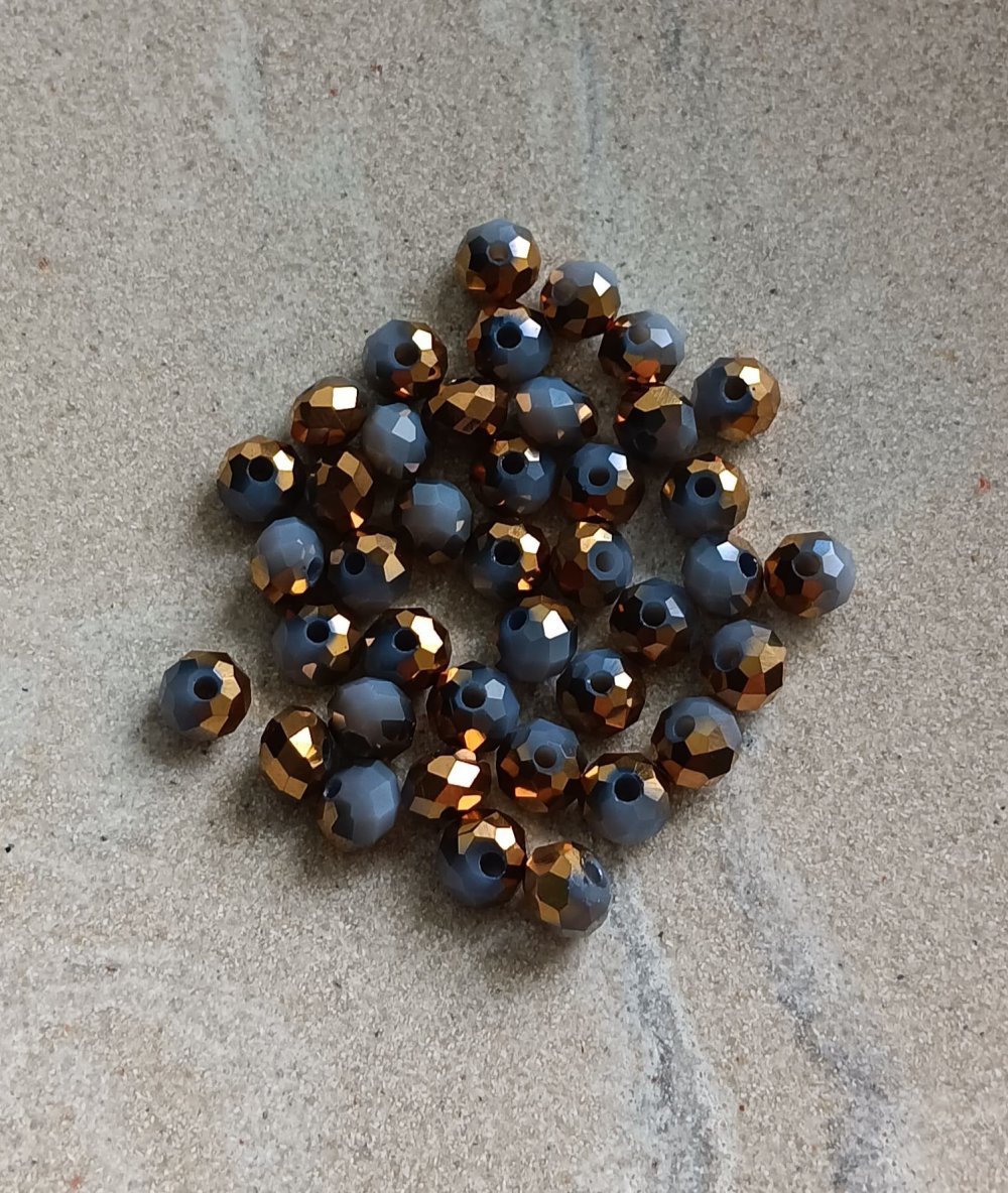 Perles rondelles à facettes bicolores, gris/doré, en verre. Dimensions : 6x5mm, trou 1mm - En lot de 40 perles ou fil de 42cm