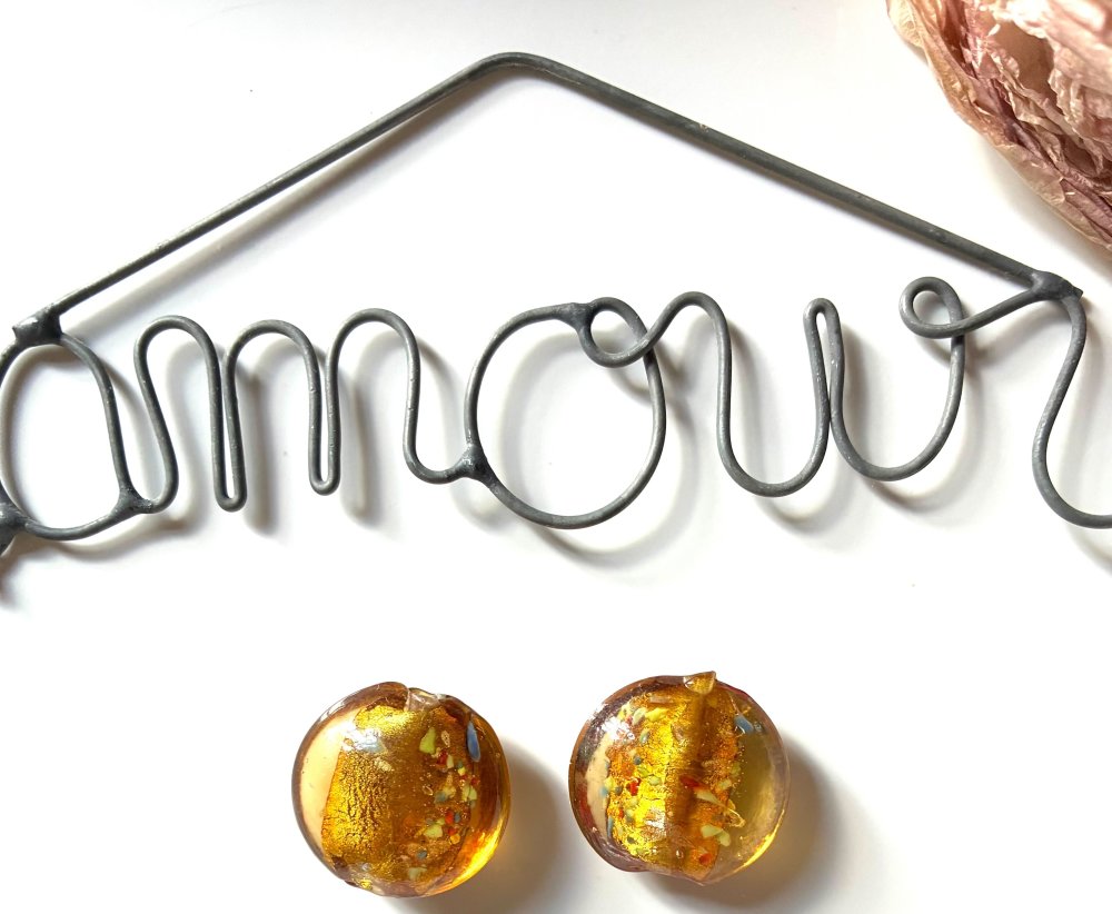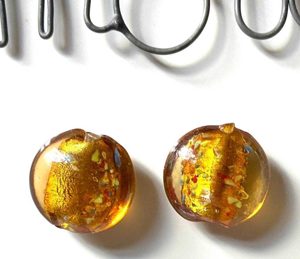 Ces deux perles rondes doré et marron avec éclats dorés mesurent 2 cm de diamètre.