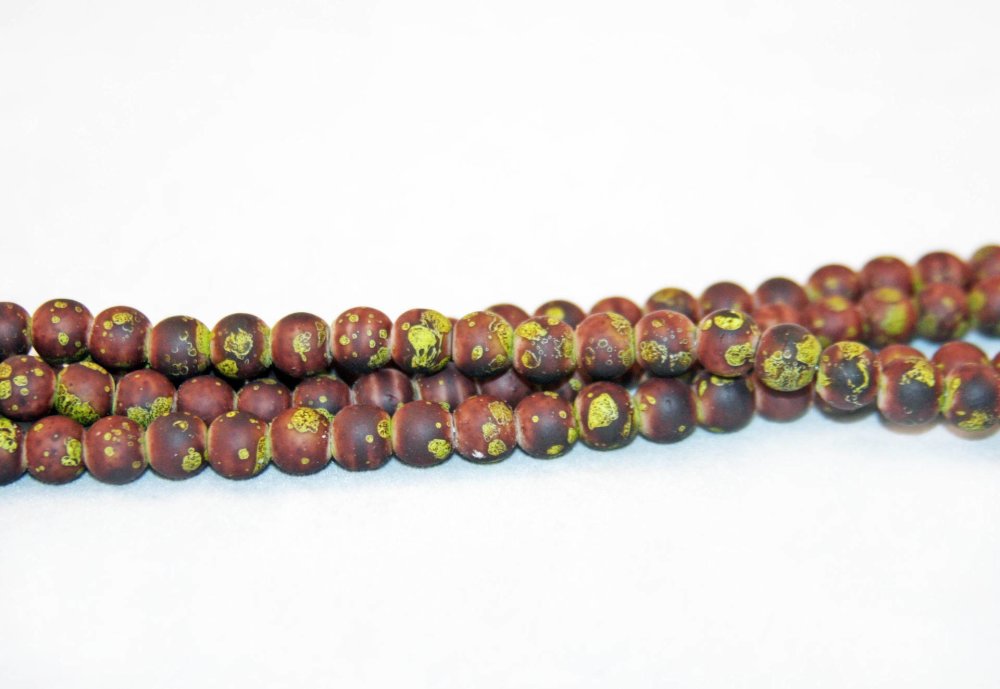 Lot de 5 rares perles en verre Finit Mat doux effet caoutchouc 10mm à Motifs Abstrait Tribal Totem Marron et Vert Kaki ton sur ton.