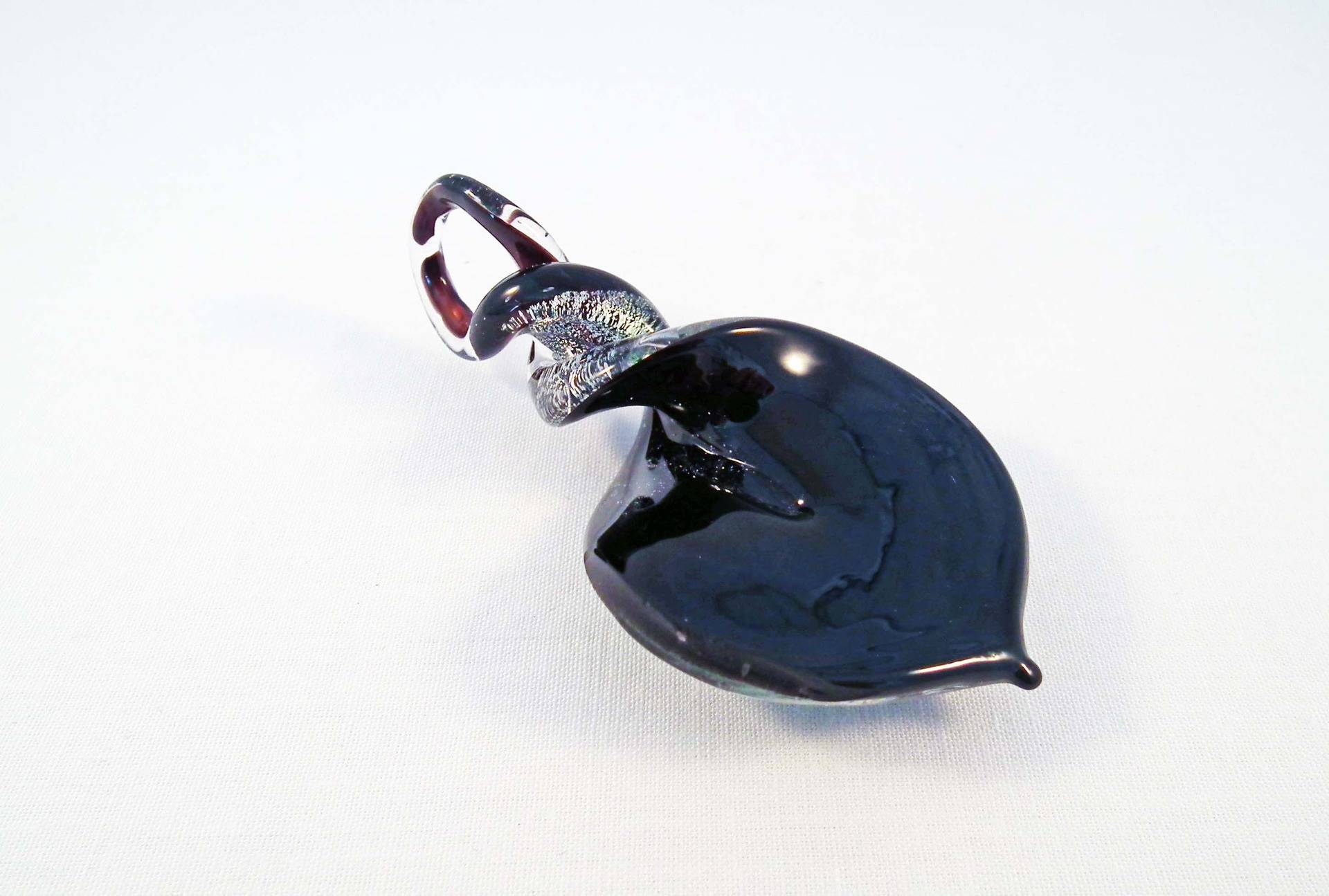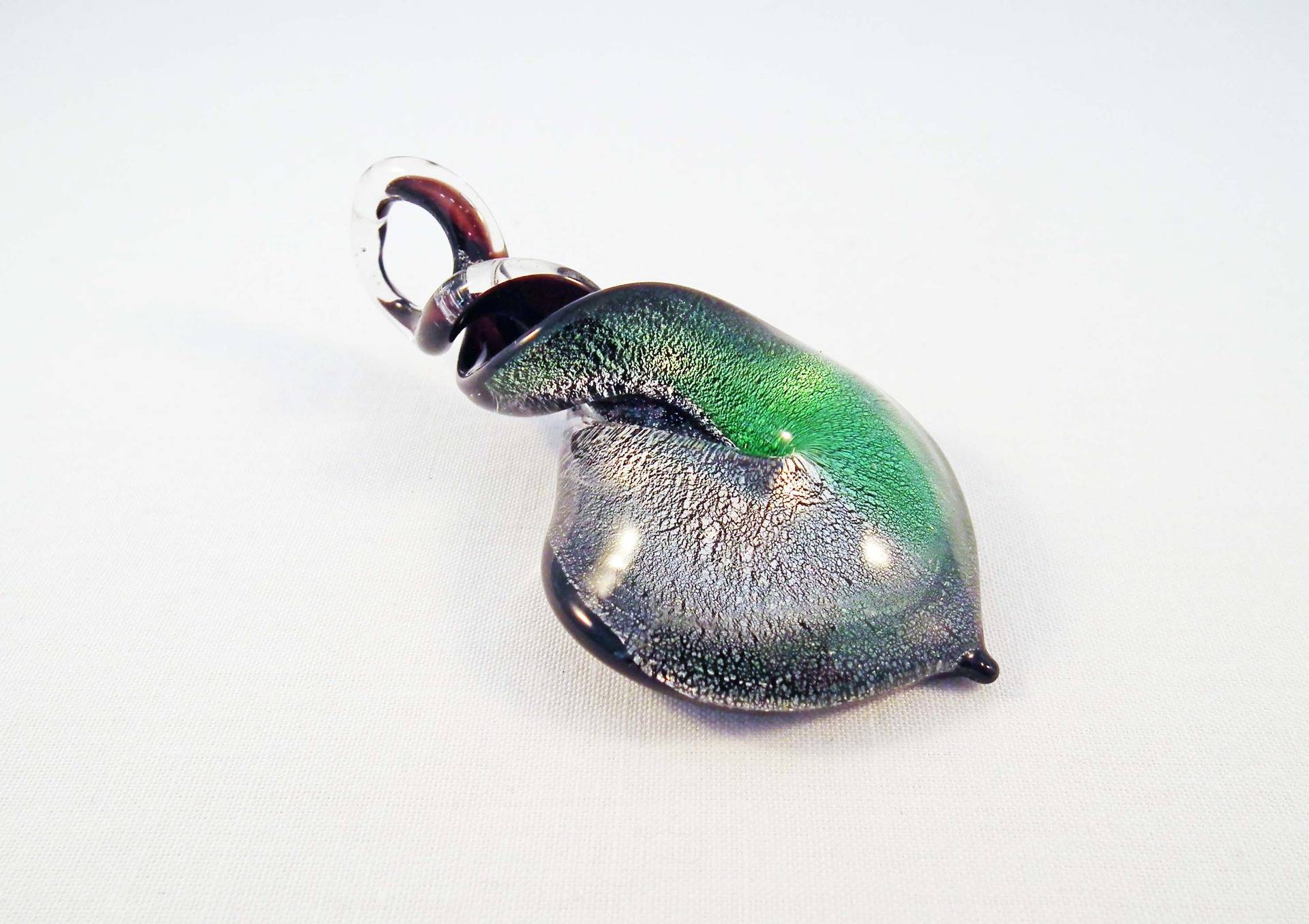 Grande Breloque Feuille torsadé en verre Lampwork Murano teintes de Vert et Gris et Côté Noir